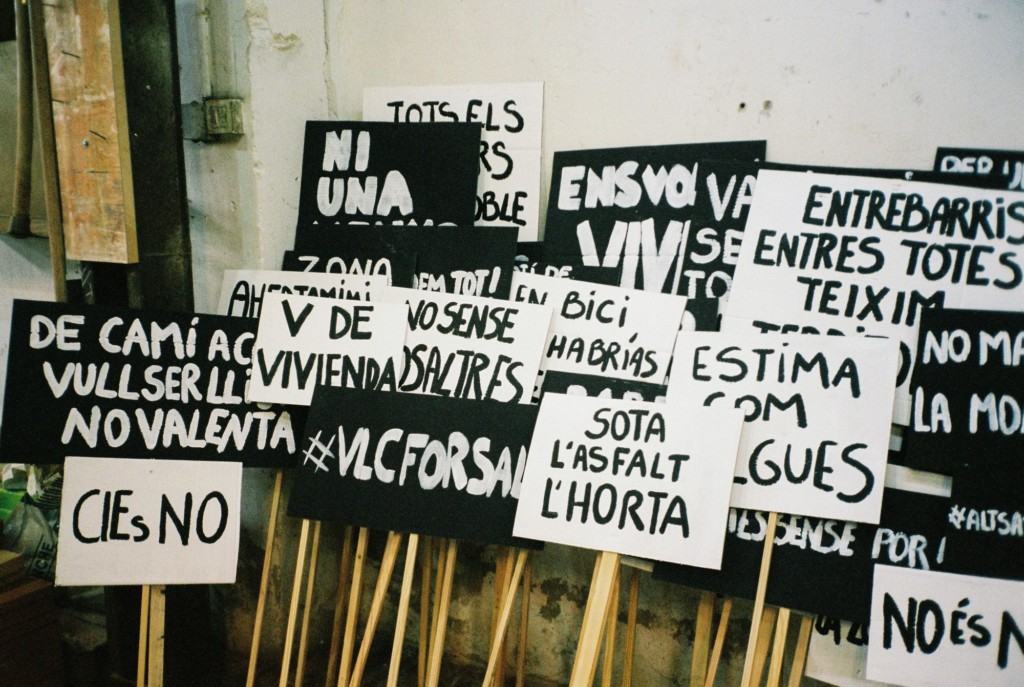 El día de la plantà, se realizó una mani-plantà en la que todas las personas asistentes pasearon desde las Torres de Serrano hasta el solar donde se plantaba la falla, pancartas con los lemas que nos habían hecho llegar.